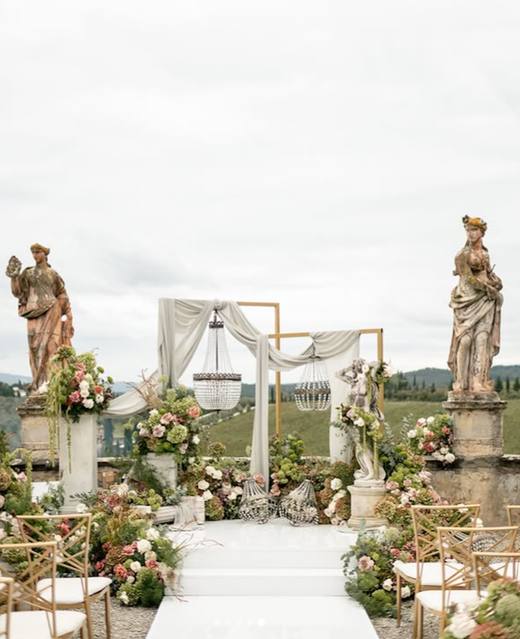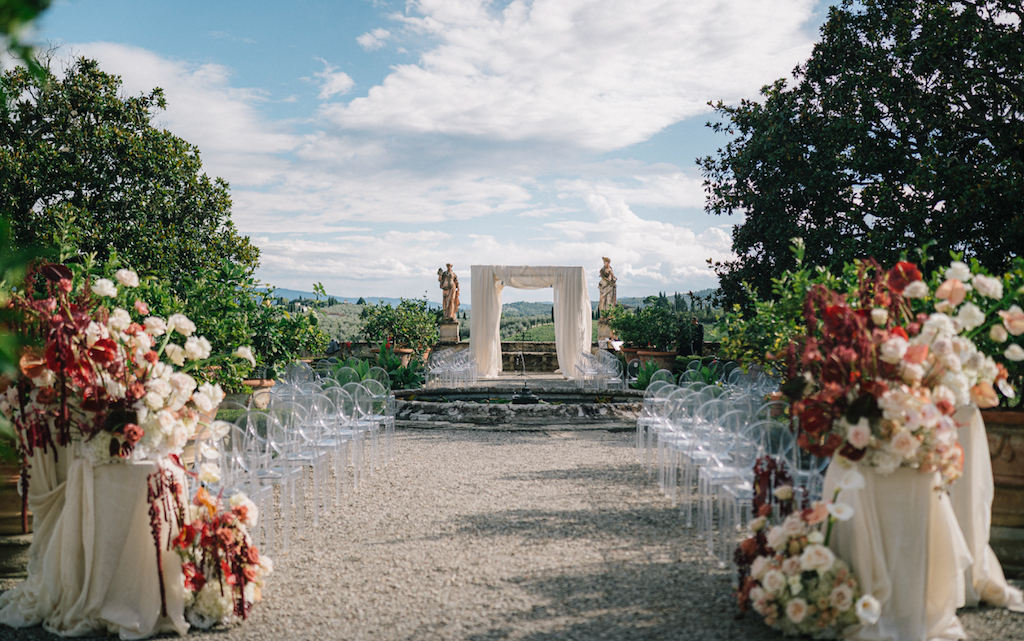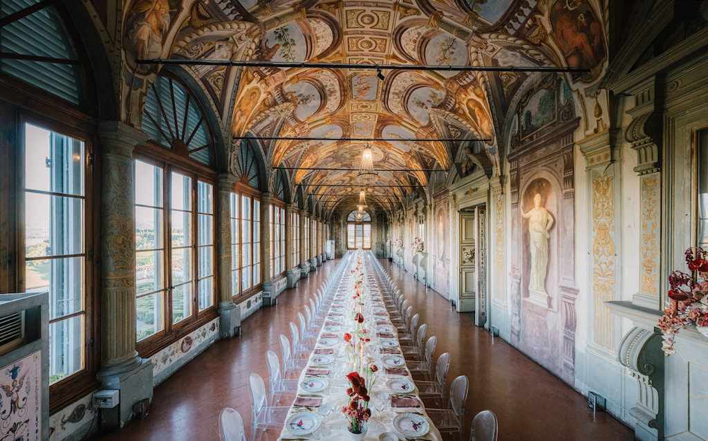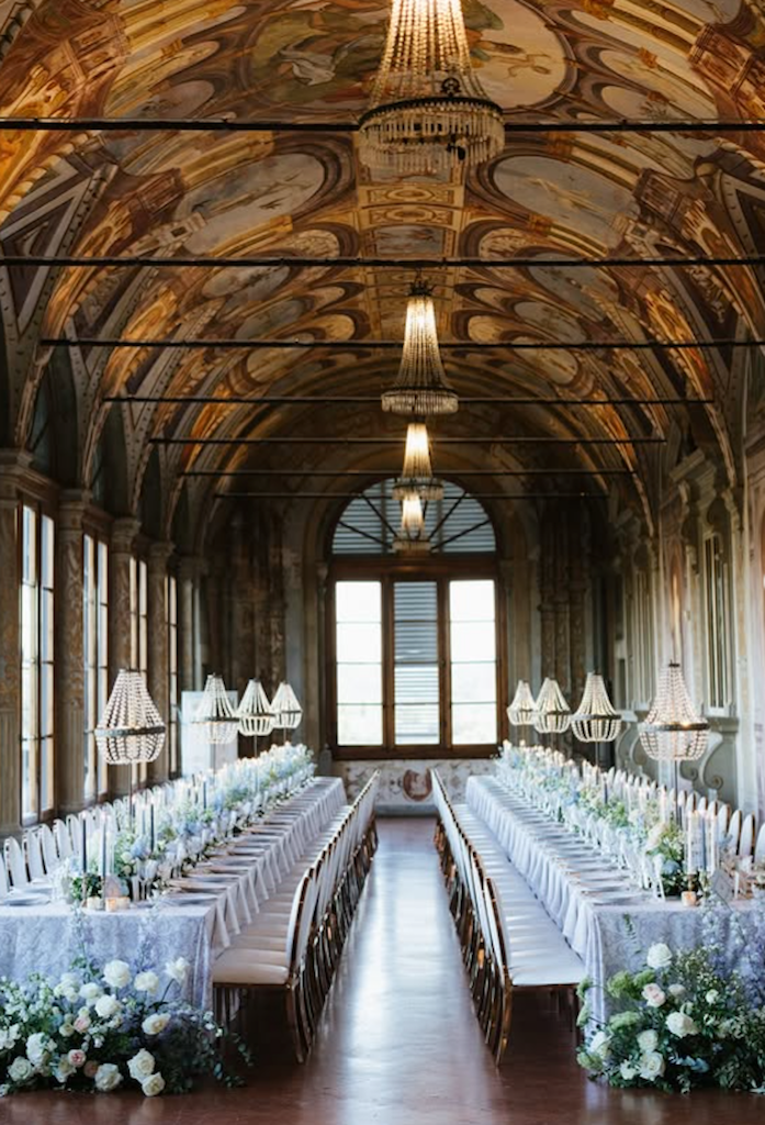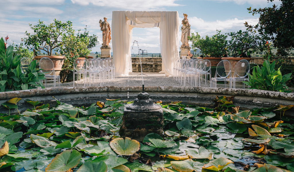 It’s a stunning Renaissance villa with beautifully frescoed rooms, formal Italian gardens and panoramic views of the Tuscan countryside — perfect for ceremonies, receptions and celebrations in an artistic, timeless setting.
