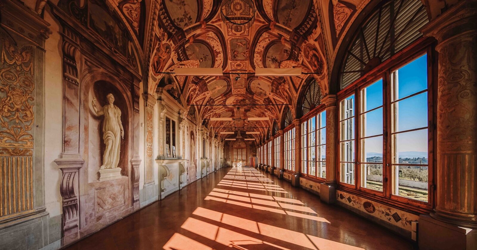 An historic Renaissance villa set on the rolling hills near Florence, offering frescoed interiors, formal Italian gardens, and panoramic Tuscan views.