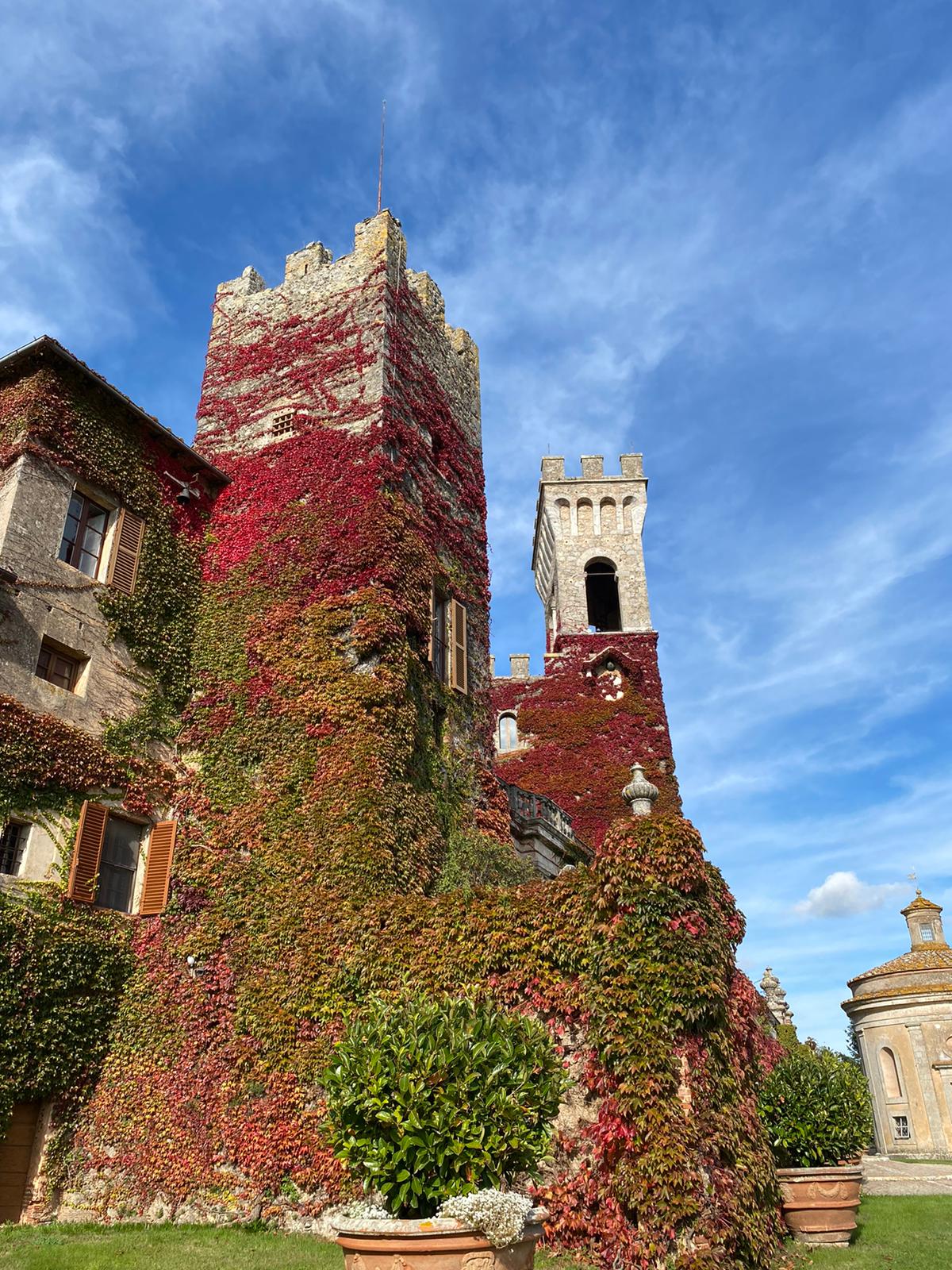 Castello di Celsa is a breathtaking medieval castle nestled among the rolling Tuscan hills near Siena, surrounded by centuries-old trees, elegant Italian gardens and endless countryside views.