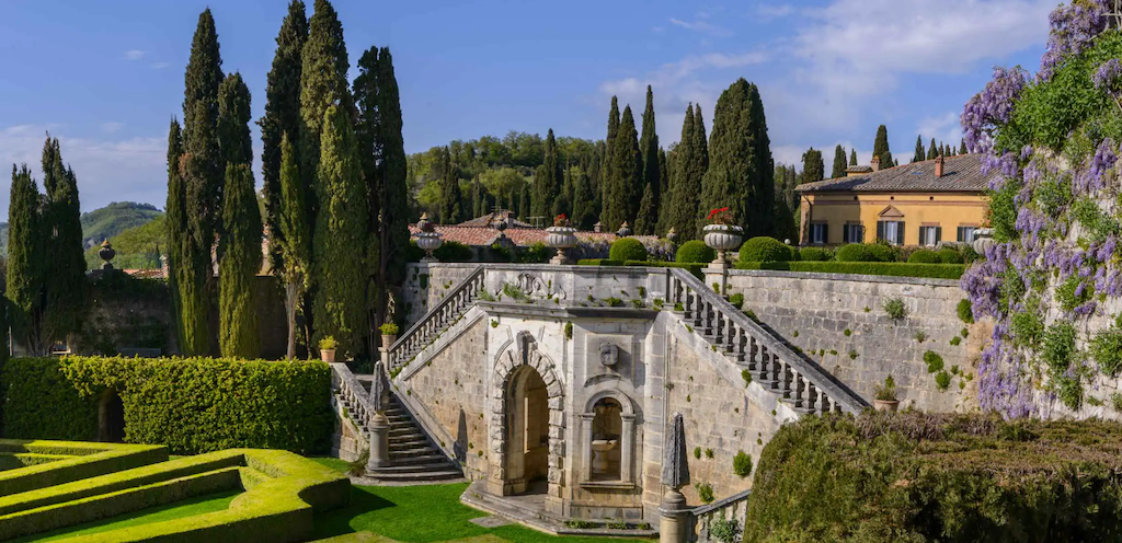 A historic 15th-century wedding estate overlooking the UNESCO-listed Val d’Orcia, surrounded by breathtaking panoramic views and iconic Renaissance gardens.